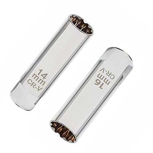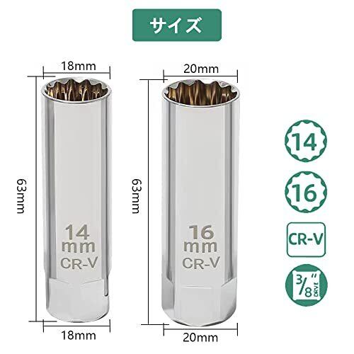 DFsucces プラグレンチ スパークプラグレンチ 磁気ジョイント ユニバーサルソケット 2本セット 12角薄壁 差込角3/8(9.5mm)イ薄型/輸入車等のプラグ交換に (14mm & 16mm)