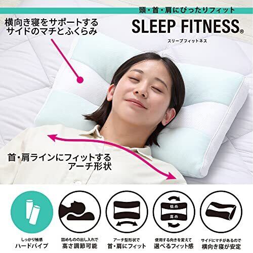 nishikawa【西川】 スリープフィットネス 枕 洗える しっかり ハードパイプ 頭・首・肩にぴったりフィット 高さ調整可能 仰向き寝 横向き寝 対応 48X38X6cm グリーン EH93009494500