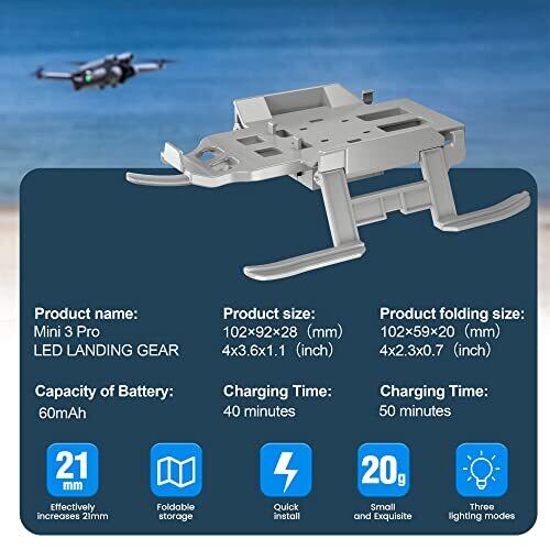 STARTRC Mini 3 Pro着陸装置折り畳み式ロングレッグ、フラッシュ付きLEDライト着陸装置に似合う Mini 3 Pro用アクセサリー | RoseRiot