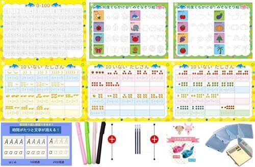 セット内容:0-100数字練習シート1枚、10以内たし算3枚、ペン本体1本、マジック芯3本、プニュグリップ1つ、クリアケース1つです。 特徴: 筆跡は数分程度で消え、ボードを洗う手間や消した後のカスが散らかる心配はない。ペンの正しい持ち方が自然に身に付くプニュグリッププレゼントいたします。 プニュグリップを使用すればペンの正しい持ち方が身につきます。 わかりやすい書き順つきで、正しくきれいな文字・数字のお勉強用シートです。 何度でもくり返し練習ができ、楽しいので自ら進んで学習できます。
