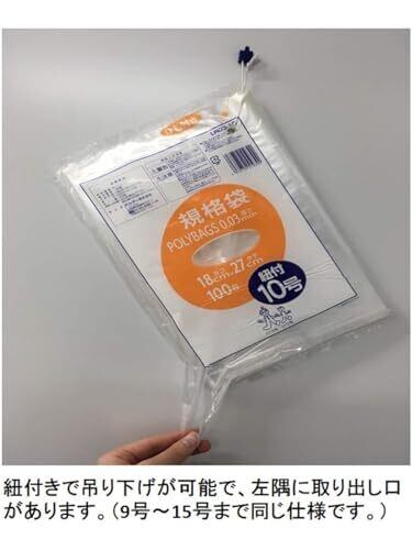 オルディ 食品保存 ポリ袋 規格袋 ひも付き 透明 100枚入 11号 横20×縦30cm 厚み0.03mm 食品衛生法適合品 ビニール袋 ポリバッグ LR03-11