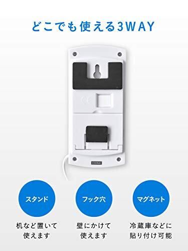 サイズ:幅52×奥行17×高さ115mm 室内表示温度範囲:-10~50度 室外表示温度範囲:-50~70度 付属品:スタンド/マグネット/壁掛け用フック穴/電池(単4形乾電池×1個) スタンド、フック、マグネットでの設置が可能で、置き場所に困らず便利 温度表示部分は2段になっており、コード先端から計測した温度と本体側から計測した温度を同時に表示させることができます。