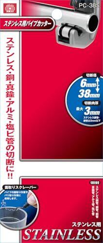 用途:ステンレス鋼管・鋼管・真鍮管・アルミ管・塩ビ管の切断 切断能力(パイプ直径):6~38mm 切断能力(パイプ肉厚):最大3mm(薄肉ステンレス鋼管・鋼管は肉厚2mm以下) 本体付属刃:PSB-5(ステンレス管用)、刃材質:ハイス鋼 適合替刃:SK11 パイプカッター替刃 PSB-4(銅管用)・PSB-8(鋼管・薄肉ステンレス管用)