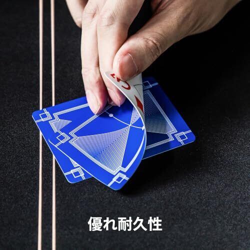カジノ品質のトランプ。レッドとブルーの2色入り。テキサスホールデムポーカーに限らずあらゆるゲームにお使いいただけます。優れ耐久性と柔軟性があなたのポーカー体験を次の次元へ。 卓越した扱いやすさ:トランプは裏面がマットな質感になっており、カードを配るときも、シャッフルするときにも、マックするときにも、簡単にカードを扱うことを可能にします。また、滑らかな表面はカードをどのようなテーブル上であっても美しく滑らせることでしょう。 高品質・100%プラスチック:安全で柔軟性のあるPVC素材を使用したこのトランプは、簡単には傷やへこみを付けたり、破ることもできないので、長くゲームを楽しみたい方に最適なアイテムです。 防水&水洗い:液体の汚れに強く水洗いも可能なので、指の跡なども簡単に取り除くことができ、プレイするたびに新品のような感覚を味わえます。 ジャンボインデックス:太字のインデックスが2つのコーナーに描かれており、何のカードかがどのシチュエーションにおいても識別しやすい工夫が施されています。くっきりと色鮮やかなプリントは長時間使用していても色褪せないインクが用いられており、シンプルでスタイリッシュなデザインがいつまでもあなたのポーカーナイトを美しく彩ってくれることでしょう。