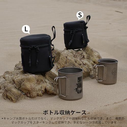 材質:高品質な素材の1000Dエアーテクスチャードヤーンを採用、高密度生地で強度高く、耐摩耗性が高く、長持ち可能です。 サイズ:使用サイズは(約)φ9.7x10cm(S)、φ11.5x12cm(L)、軽量且つコンパクトで持ち運び楽々。 防水防汚:生地にPUコーティングとの防水加工処理済みで、防水防汚の機能が備え、水、汚れや雨に強いです。 携帯性高い:ボトルの上とサイドにキャリングループと収納ベルトが付き、手軽にリュックやカバンなど様々なバッグに取り付けられ、簡単に持ち運べます。 多彩なシーンに活躍している:キャンプ水筒ボトルだけでなく、マッグカップや調味料なども収納でき、また、複数のマッグカップをスターキングして収納でき、多彩なシーンで活躍しています。