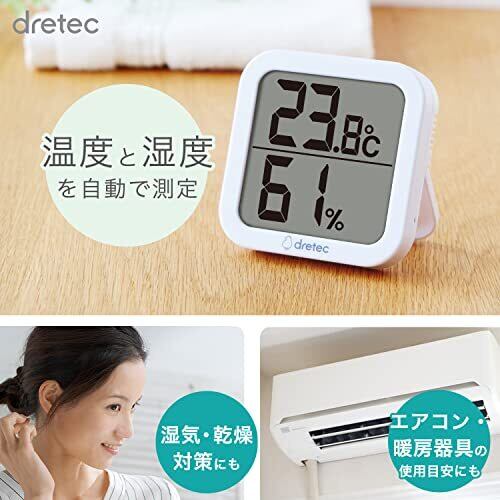 ドリテック(dretec) 温湿度計 温度 湿度 デジタル 大画面 壁掛け スタンド ホワイト W81×D17×H81mm