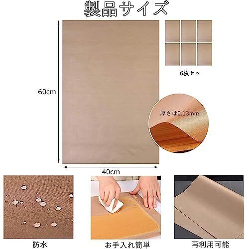 6枚セット加工 耐熱 耐油 耐久 水洗い可能 クッキングシート オーブンペーパー オーブンシート 繰り返し使える オーブン ベーキング 料理 グリル フライ 蒸し 40*60cm-ブラウン