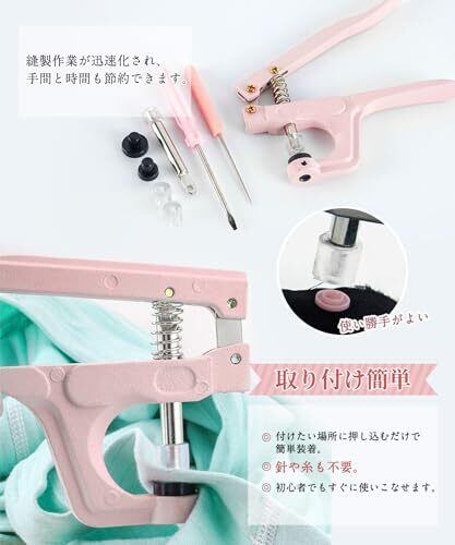LIANHATA ハンディプレス セット T8 T5 T3に対応 DIY 手芸 裁縫用 スナップ ボタン 取付簡単 ビニール袋 衣服 テーブル (ピンク)