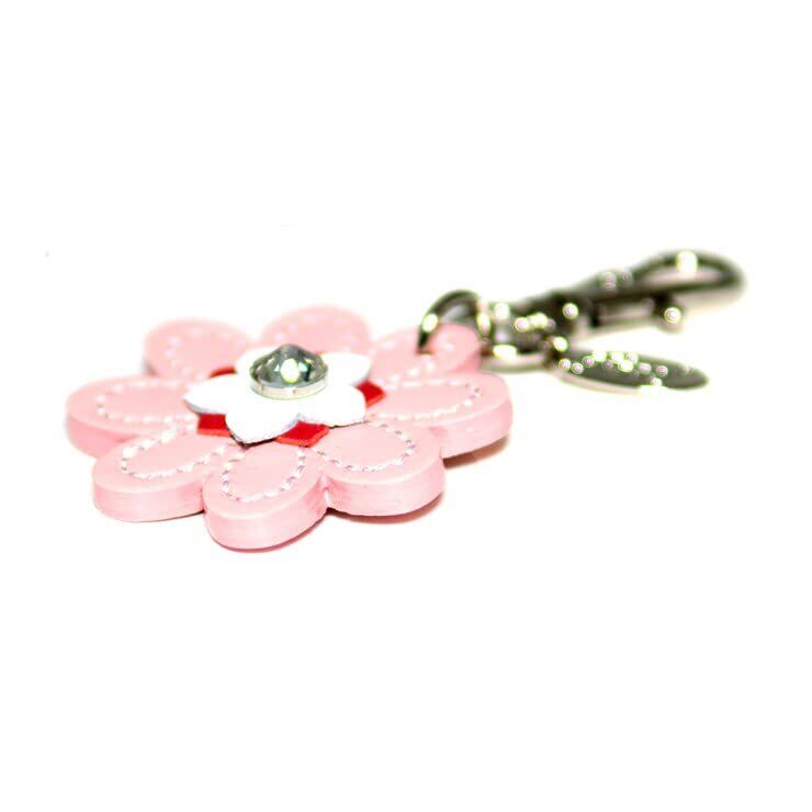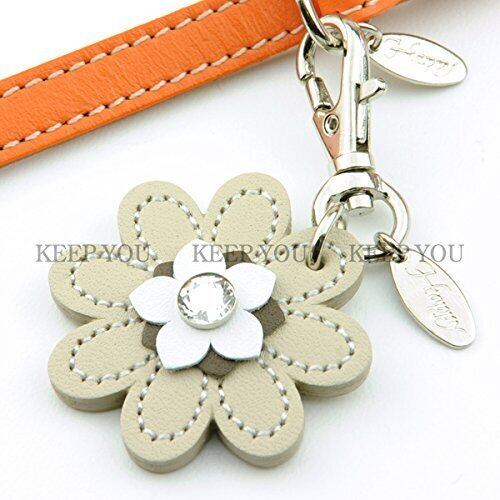 [Happy] 花チャーム 牛本革 ラインストーン ジュエル付 全9色 キーホルダー 日本製 HC-03 フラワー