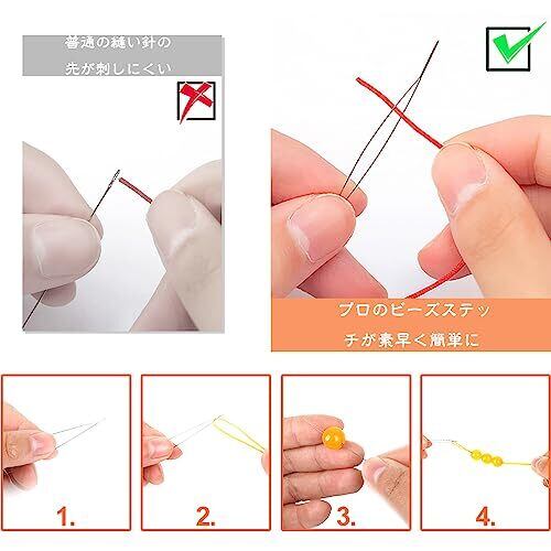 ビーズ針 ビーズ通し針 超極細針 糸通し ビーズ通し ビーズ刺繍針 ビーズ織り針 手作り DIY 縫製 手芸用品 ブレスレット ジュエリー作成 収納チューブ付き(5.8/7.6/10.2/11.4/14cm)