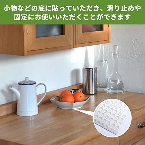 【パケージ内容】100粒ソフトクッション、1粒は直径7mmx高さ1.5mm、材質:EVA。あらゆる小物、ガジェットの滑り止めや固定、キズの防止、引き出しやドアなどの衝撃緩和、カギやブラインドタッチ(キーボード)の目印などなど。強力な粘着剤を使用しているので、粘着力が高く、剥がれにくく、引きちぎっても痕跡が残りません。また、耐摩耗性と弾力性があり、滑り止め固定効果にも優れています。用途に合わせたサイズ、カラーバリエーションとなっておりますので、お好きなセットをお選びくださいませ。 【多目的・耐用】卓上小物・音響機器・スピーカー・タブレット・携帯電話、花瓶など、スーツケース、ズレ落ち防止やキズ防止などに、アイデア次第で様々な活用が出来ます。衝撃吸収性に優れたシリコーンを使用し、戸当りの衝撃を抑えます。扉を開けるときに壁にぶつかってしまうことや、扉が勢いよく閉まってしまう時の傷防止ができ、しっかりガードしてくれています。高い耐久性と振動吸収力があります。戸の開け閉め音が大きい時に、ドアクッションや戸当たりとしてショックを吸収してくれて、衝撃音を抑えられます。摩擦係数が高く、優れた滑り止め効果があります。リモコン、パソコン、ブックスタンド、ハンガー、家具などの滑り止め、ゴム足としてご使用いただけます。セキュリティ保護にもあります、環境保護無害、家族に本当の安心感をもたらします。地震時に家具を保護するのに役立ちます。 【透明で目立たない】目立ちにくいシンプルな半球のデザインとなっておりますので、外観を気にされている方にも大変オススメです。貼り付けやすいシールタイプです。粘着付きだから、シートからはがして貼るだけです。透明クッションだから目立たちにくいので、気になる場所にはペタペタと貼って使いましょう。耐摩耗性に優れて弾力性が良くて、粘着面は強度な接着剤を採用されて接着力が強いです。 【使用方法】粘着シートからボタンを単に剥がして、どんな物にでも貼り付けると、ノンリップな表面ができます。バンパーはセルフスティックであり、引き裂かれたときに残留物が残らない。 透明なゴム足は、家具の騒音を軽減するのに最適です。透明なデザインで、どんな色にも合わせることができ、物や家具の美しさに影響を与えることはなく、部屋の元のデザインに影響を与えません。1回の引き裂き、1回の貼り付けで、操作が簡単で、あらゆる素材の表面にも使用できます。※取り付け箇所のホコリ、ゴミ、油分等は必ず除去してから製品を貼り付けてください。 ※除去が不十分な場合、しっかりと張り付きません。 【ご注意】1.この戸当たりクッションは1粒が小さいから、子供に誤飲されないようにご注意ください。お届け後に製品に不具合があった場合は速やかに対応致しますのでご安心のうえお買い求めください。2.剥がした後にノリが残っている場合はシール剥がし、またはアルコール等の溶剤でふき取ってください。※溶剤は製品の材質を痛めてしまう場合がございます。3.万が一商品不具合のようでしたら、お気軽にご連絡下さい。