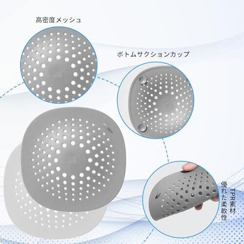 Doyime 排水口カバー シンク ふた 排水溝 フィルター (2枚セット) フロア排水カバー ゴム製 つまり防止 ヘアキャッチャー 床ドレン お風呂 洗面所 バスタブ用 快速排水 グレー ホワイト