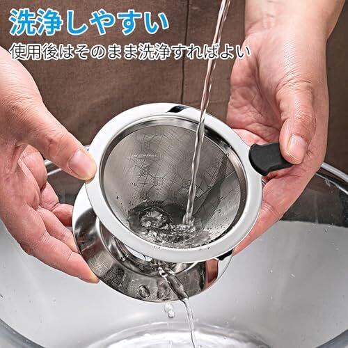 【材質】本体:ステンレス鋼 取手:シリコンゴム 【商品サイズ】上部径11.5cm 全幅13.5cm 高さ8cm 下部径9cm【商品重量】約90g 【ペーパーレス】ペーパーフィルターと違いコーヒー独自のオイルを吸収しないのでトロッとしたコクのあるコーヒーをお楽しみ頂けます。紙フィルターが不要なのでエコと経済的な生活を楽しめます。 【高品質素材】ステンレス304食品レベルを採用していますが、金属臭も感じられません。高品質の防錆ステレンス製なので、耐久性と熱伝導が良いし、コーヒーの温度と栄養価の高い香りを完璧な状態に保つこともできます 【保証】使用後すぐにウォーターコーヒー金属フィルターで洗い流し、メンテナンスが簡単、食器洗い乾燥機で洗えます。 尚、万が一商品に不具合があった場合は、商品到着から14日以内にご連絡ください。新しい商品と交換もしくは返金をさせていただきます。