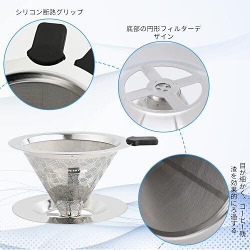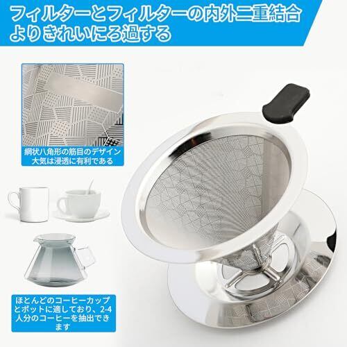 コーヒードリッパー ステンレス 2~4杯用 ステンレスフィルター ハンドドリップ 2層構造 ペーパーレス 円錐 コーヒー ドリップ 器具 フィルター不要 くり返し使える 食洗機対応