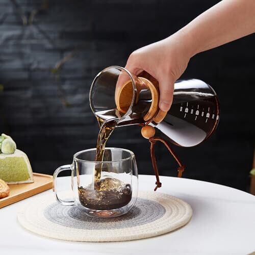 【優れた素材】:このコーヒードリップサーバーは耐熱ホウケイ酸ガラスで作られており、高い透明度と、熱さと冷たさへの強い耐久性を誇ります。短時間で加熱・冷却を繰り返しても割れることはなく、耐熱温度差は170度です。安心してご利用いただくことができます。フィルターは18-8ステンレス鋼製で、コーヒーフィルターを必要とせず、より環境に優しく健康的です。洗って繰り返し使用することができ、コーヒーをドリップしたあとのフィルター清掃も簡単です。ダブルフィルター構造となっており、ドリップスピードも安定しています。速すぎたり遅すぎたりといった心配をせず、コーヒータイムをお楽しみいただけます。 【エレガントなデザイン】:このガラス製ハンドドリップコーヒーサーバーは、柔らかなラインのデザインを採用しています。容量ごとの目盛りラインも搭載しているため、コーヒードリップ時の量の把握も簡単です。外突ライン型の注ぎ口は、水流をより集中させ、コントロールしやすく、テーブルにこぼれることがありません。コーヒーサーバーの中央部には木製の丸いハンドルがあります、火傷しにくく、心地よい握り心地を提供します。 【紙フィルター不要】:高品質な二重構造のステンレスフィルターは、濾過孔が非常に細かく滑らかで、素晴らしい効果を誇ります。清潔で耐久性があり、使用後は水で簡単にすすぐだけで再び使用できます。コーヒーの旨み成分を油分を含めて全て味わう事が出来ます、紙のコーヒーフィルター特有の匂いがありません。 【サイズと容量】:このスリムハンドドリップコーヒーサーバーは、高さ21.3CM、口径(注ぎ口含む)8.7CM、ベース直径7.5CM、満水容量888ml、実用容量600mlとなっており、日々のニーズを満たすことができます。オフィス、家庭、旅行、どのシーンにもぴったりです。 【贈り物に最適】:この透明で美しいドリップコーヒーサーバーは、家族、友人、恋人、そしてコーヒー愛好家のための完璧な贈り物です。コーヒーやさまざまな飲み物を作るのに適しています。ハンドドリップコーヒーの楽しさを満喫するための完璧な選択肢であることでしょう。素敵なコーヒータイムをプレゼントにどうぞ。