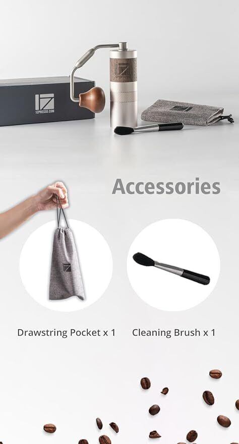 【小型でも安定した挽き心地】 2つのベアリングで中心軸をしっかり固定し、ブレを抑えた安定構造を実現。60クリック以上の挽き目調整により、ドリップに最適な粒度を簡単に再現できる コーヒーグラインダー です。 【持ち運びやすい 軽量設計】 500g未満の軽量設計で、ドリンク缶よりも小さいサイズ感。握りやすく、リュックやカバンにもすっきり収納できます。エアロプレスのプランジャー内にも収まるため、外出先でも手軽に使える 手動コーヒーミル です。 【折り畳み式ハンドルで省スペース】 頑丈な折り畳み式ハンドルを採用し、使用後はコンパクトに収納可能。旅行やキャンプなどの持ち運びにも便利な コーヒーミル 手動 として活躍します。 【簡単分解でお手入れも快適】 工具不要で分解と組み立てが可能。日常のお手入れも手軽に行え、豆本来の風味を楽しめる コーヒー豆挽き 体験をサポートします。 【安心の品質と保証】 各パーツは1Zpressoチームが精密に設計。長期間使用しても緩みにくく、約100〜200kgの使用を想定。1年間の保証と日本のお客様にも安心のサポートが付いた 手挽き コーヒー ミル です。