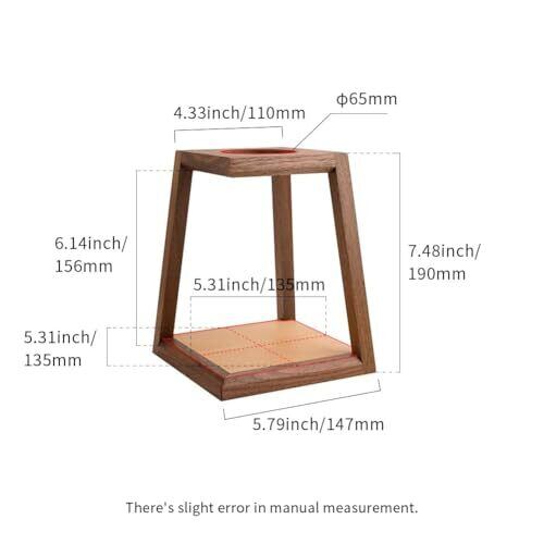【サイズ】天面は 11cm×11cm、孔径 65mm 、底面は 15cm×15cm 、全高 19cm、有効高さ 15.8cm 。黒クルミ材とブナ材をホゼ(榫卯)で組み立て、多くのコーヒーカップやシェアポットに適合。コーヒーブリューのシーンにスムーズに馴染み、整然としたコーヒーワークスペースを作り出します 。「※手動での測定ではわずかな誤差があります。 【高品質素材】厳選した黒クルミ材とブナ材を使用し、ホゼ(榫卯)技法で組み立てることで、しっかりとした構造を実現。天然木材ならではの暖かな触感と独自の木目模様で、冷たいメカニカル感を解消。長期間ご使用いただける、味わい深いコーヒーツールとなります 。 【使いやすい】約 430g の軽量設計で、2 通りの使い方が可能:電子スケールの上に直接置く、又は 13.5cm 以下の電子スケールを底面に配置して使用。手冲時にコーヒー抽出データを簡単モニタリングし、手冲の精度を高めます 。 【独特デザイン】3 本脚の四角錐台形状で、斜辺に面取りデザインを採用。黒クルミ材の落ち着いた杢目とブナ材の柔らかな質感が融合し、自然の息吹と匠の技を凝縮。コーヒータイムにアートな雰囲気を演出し、お客様のセンスをアピールします 。 【ご注意】天然木材を使用しておりますので、木目や色合いには個体差がございます。これは自然が贈る特別な “証印” であり、お客様にお届けするのは、ひとつひとつ唯一無二の、温かみのあるコーヒー器具です。予めご了承くださいませ 。