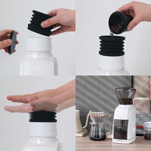 コーヒーグラインダー 単回投与ホッパー Baratza Encore コーヒーグラインダーに適合 シリコンベロー メンタル蓋付き 残留コーヒーかす用 ホワイト
