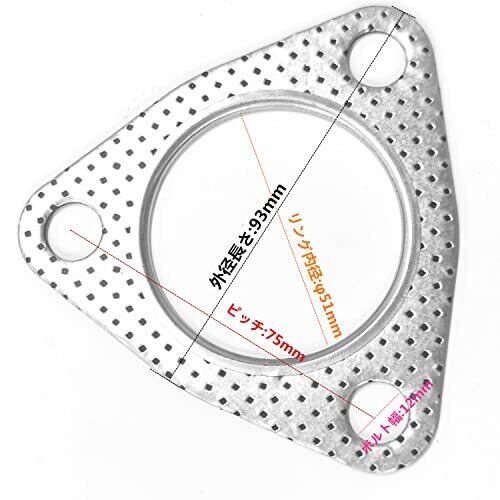 マフラーガスケット 1枚入り 三角 φ51 ピッチ 75mm ターボガスケット 排気ガスケット フランジガスケット 金属リング セラミック マフラーガスケット マフラーオートバイ用 エンジン カバー ガスケット汎用 厚さ2mm