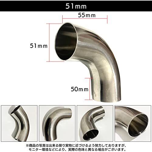 S-NET ステンレス 曲げ パイプ 90度 マフラー エキゾースト 排気管 汎用 ジョイント ワンオフ サイレンサー SUS 304 1.5mm 厚 51Φ
