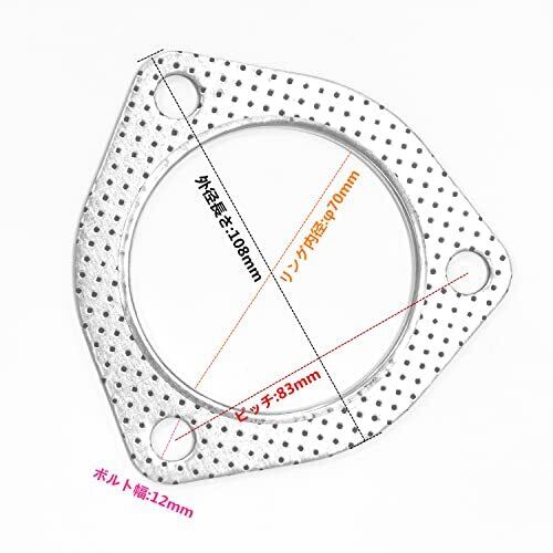 マフラーガスケット 1枚入り 三角 φ70 ピッチ 83mm ターボガスケット 排気ガスケット フランジガスケット 金属リング セラミック マフラーガスケット マフラーオートバイ用 エンジン カバー ガスケット汎用 厚さ2mm