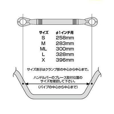 ハリケーン(HURRICANE) ハンドルブレース φ1インチハンドル用 極太タイプ MLサイズ 300mm クロームメッキ HB0713