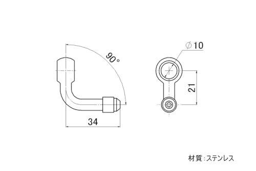 材質:ステンレス サイズ:AN3 φ10 タイプ:タテ90° 内容量:2個入りパッケージ
