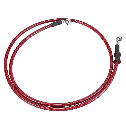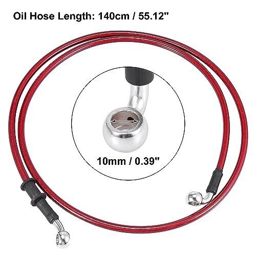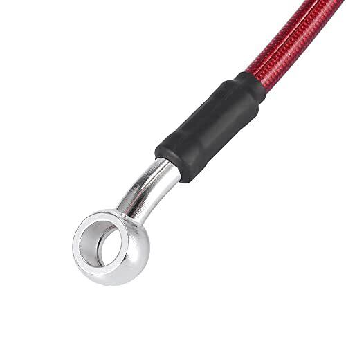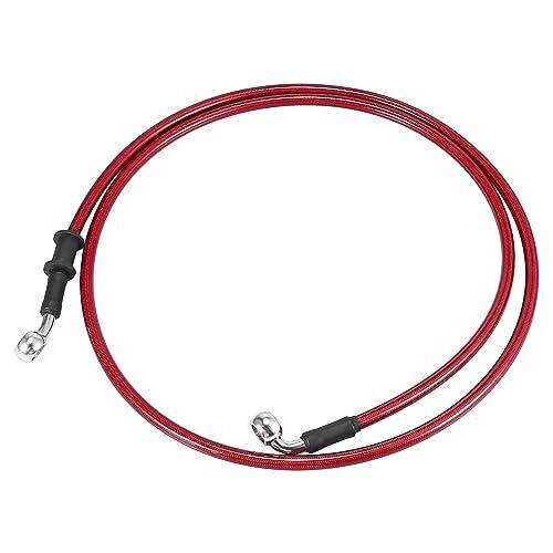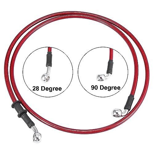 Motoforti バイク用 ブレーキ クラッチホース オイルホース 油圧強化 オートバイ ステンレス 28°+90° 赤 140cm