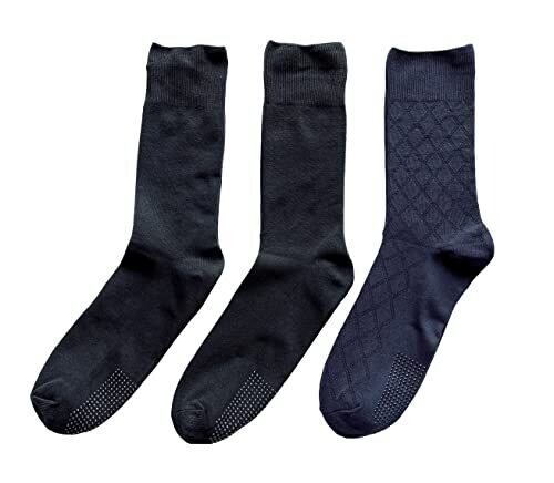 ソックス メンズ 滑り止め付 靴下 メンズ 薄手 夏 ビジネス ソックス 口ゴムゆったり 無地 25-27cm 3足組 (色はお任せ) E19