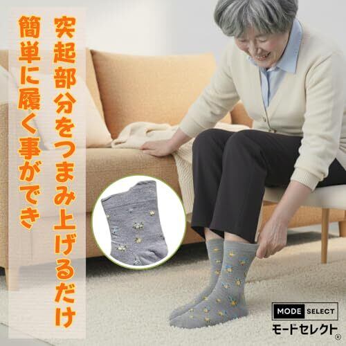 【サイズ】23-25cm 3足セット。色はお任せください。画像のような3足です。 【素材】ポリエステル・綿・ポリウレタン、通気性のよい綿混素材で快適な履き心地です。 楽に履けます。突起部分をつまみ上げるだけで簡単に履く事ができ、広いゆったりとして履き口なので締め付けず楽に脱げます。 シンプルなデザイン、お気軽に使っていただけます。介護用にもおすすめの靴下です。