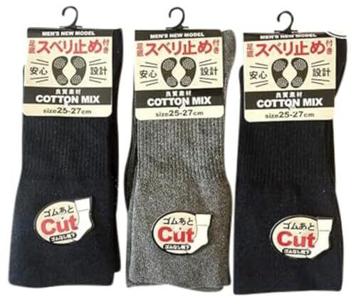 ソックス メンズ 足底 すべり止め付 靴下 紳士 綿混 口ゴムなし 25-27cm 3足セット(色はお任せ)E06