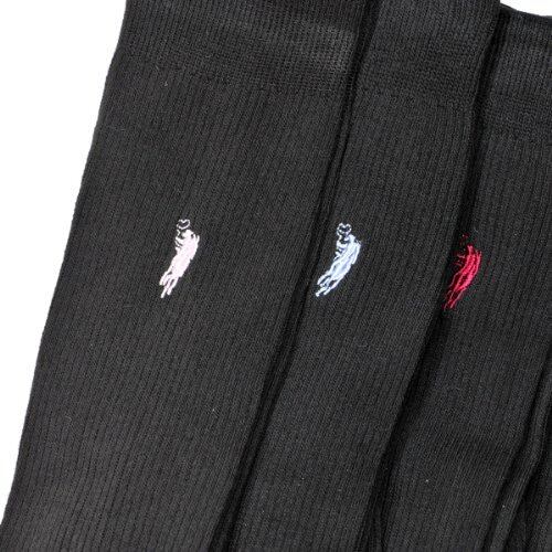 (ウェスタンポロテキサス)WESTERN POLO TEXAS [3種アソート6足セット] 黒ハイソックス (長さ37cm) レディース靴下 ブラック(マーク:ブラック/ブルー/ピンク) 22-24cm