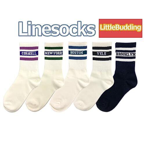 [Little Budding] ボーダー 靴下 レディース ラインソックス クルー丈 カジュアル スポーティー 5柄5足組(22~25㎝) | RoseRiot