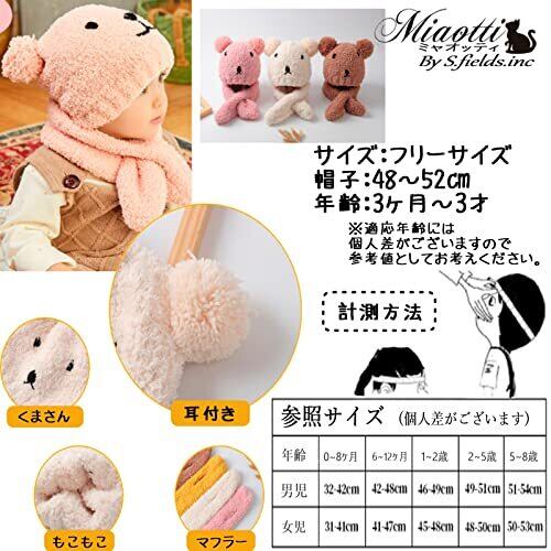 [miaotti] [ミャオッティ] ベビーニット帽子 マフラー 2点セット くま 赤ちゃん 新生児 冬 耳付き 防寒対策 0~2歳 フリーサイズ | RoseRiot