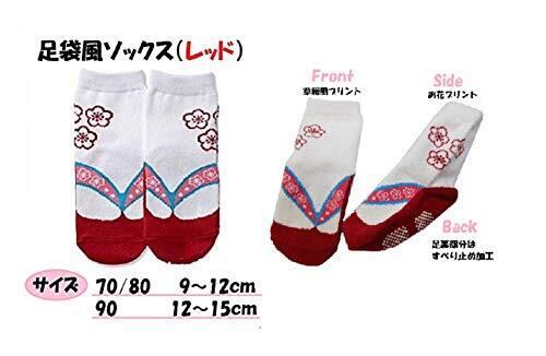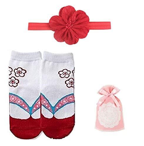 ベビー キッズ 子供用 草履/足袋風 靴下 ソックス 髪飾り ヘアバンド 女の子 和装小物 セット レッド RS-826