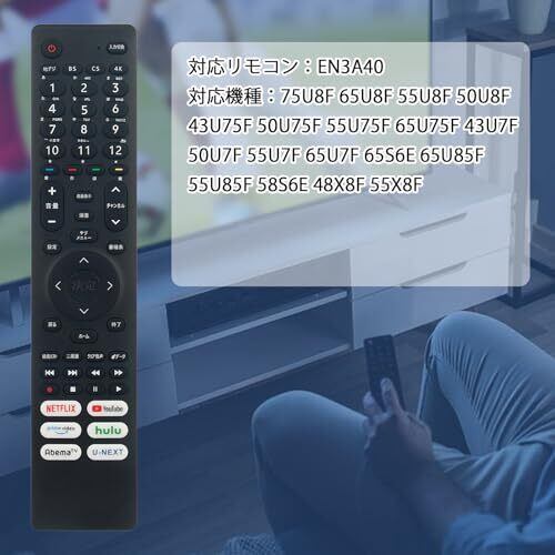テレビ用リモコン EN3A40 fit for Hisense ハイセンス 75U8F 65U8F 55U8F 50U8F 43U75F 50U75F 55U75F 65U75F 43U7F 50U7F 55U7F 65U7F 65S6E 58S6E 48X8F 65U85F 55U85F 55X8F
