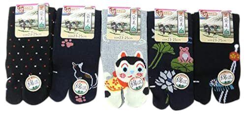 【サイズ】23-25cm お買得5足組 ※画像のような5足です。 【素材】綿・ポリエステル・ポリウレタン 綿混 爽やかな履き心地♪かかと付で履きやすい。 和柄.でオシャレに履いて頂けます。 一年中快適! 中国製