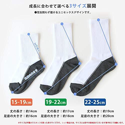 ◆タイプ:足底切り替え白靴下【クルー丈】 ◆セット数:6足セット ◆サイズ:15-19cm、19-22cm、22-25cmの3サイズ展開 ◆平置きサイズ: 【15-19cmサイズ】丈の長さが約14cm・足底の大きさが約16cm 【19-22cmサイズ】丈の長さが約17cm・足底の大きさが約18cm 【22-25cmサイズ】丈の長さが約19cm・足底の大きさが約20cm