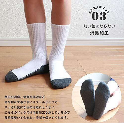 [box408] キッズ ジュニア 男の子 女の子 スクール 汚れ目立たない 足底切り替え 白 リブ 靴下 消臭 つま先・かかと補強 クルー丈6足セット