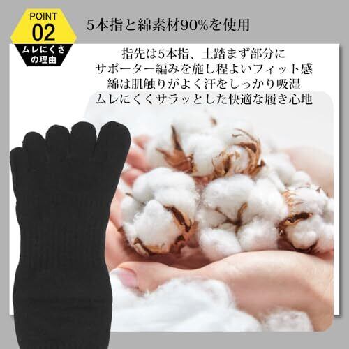 素材:綿90%、ポリウレタン10% サイズ:24.0〜27.0㎝ タイプ:五本指ソックス(カカト付き) 生産国:中国 (日本で企画、中国で生産) 特徴:土踏まずにはサポート付き。厚手タイプで破れない、タフな靴下です。 先丸タイプで好評かを頂いている商品の5本指ソックスです。
