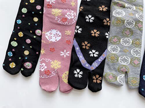 【サイズ】23-25cm かかとから履き口の丈約11cmです。5足組 ※画像のような5足です。ショート丈、アンクル足袋ソックスです。 可愛らしい和柄です、オシャレに履いて頂けます。カカト付です。ぴったりフィット♪ 【素材】綿・ポリエステル・ポリウレタン 綿混 爽やかな履き心地♪かかと付で履きやすい。 一年中快適!ゆったりと優しくソフトな履き心地です。