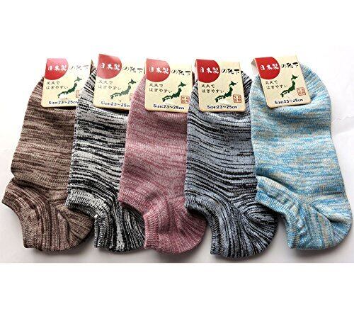 日本製 ソックス レディース 綿混 引き揃え杢調 23-25cm 5色組(カラーはお任せ)