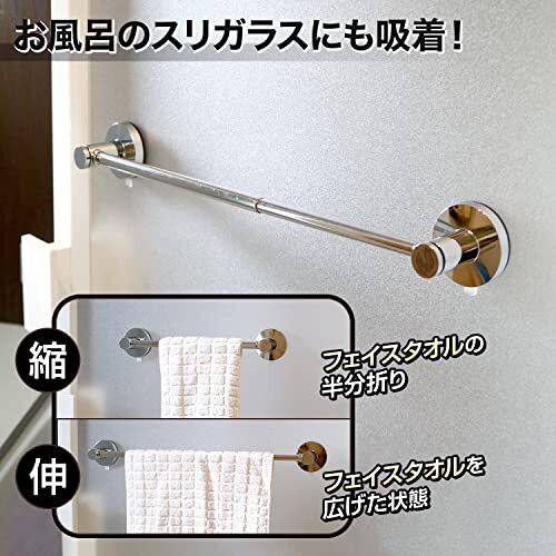 すごい吸盤 ステンレス 伸縮 タオル掛け 36~55cm (最大干し幅45cm) ザラザラ壁対応 密着強力ジェル 落下防止機能