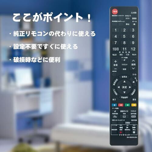 1)テレビ用リモコン fit for シャープ GA952WJSA GA952WJSB GA952WJSC 2)この商品について凡ゆる設定をする必要がなく、電池を入れると、直接にご使用頂 けます。※乾電池は含まれておりませんので、別途でご購入下さい。※この商品の配列はオリジナルリモコンと違いますのであらかじめご了承ください。 3)適用機種: LC-16K5 LC-19K5 LC-22K5 LC-24K5 LC16K5 LC19K5 LC22K5 LC24K5 4)ご購入日より一年以内、商品について何か不具合などがあれば、メールでご連絡ください。弊店は新品交換などの対応を行うことができます。
