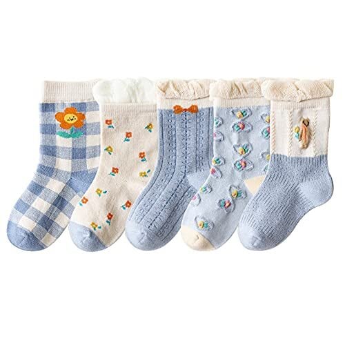 [Keaida] 靴下 女の子 ソックス 子供の靴下 キッズ ソックス 5足セット お姫様 可愛い 花柄 フリル 学生用 通園通学 綿