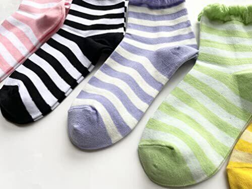 ソックス レディース おしゃれ 薄手 夏用 靴下 柄ソックス 綿混 10足セット (ボーダー柄A)