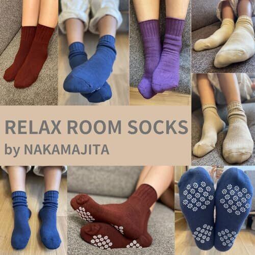 [NAKAMAJITA] あったか 裏起毛 パイル 靴下 足裏滑り止め付き 保温 あたたかい 5足セット レディース ソックス ルーム 部屋履き 22-25㎝
