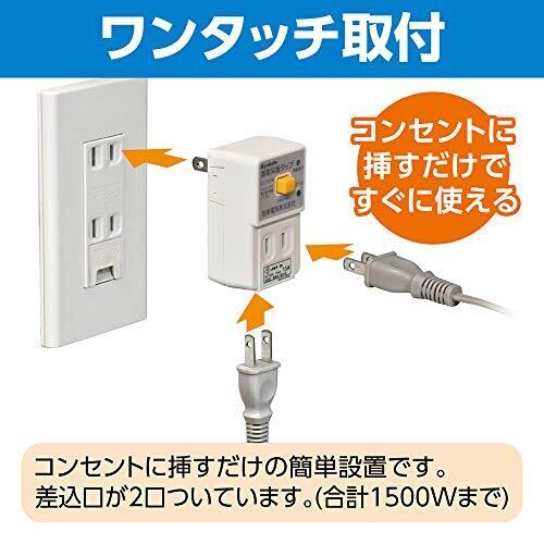 【漏電保護タップ】洗濯機・冷蔵庫・食洗器・電子レンジなど、水回りの電気製品にお使いいただける、漏電保護タップです。 【簡単設置】コンセントに挿すだけですぐにつかえる、ワンタッチ取り付けです。 【点灯お知らせ】漏電があった際、漏電表示が点灯します。リセットボタンで再度、通電が可能です。 【コンパクトサイズ】軽量かつコンパクトなサイズです。差込口が2口ついています。 【商品詳細】・定格:100V 15A・屋内専用・材質:本体:PBT