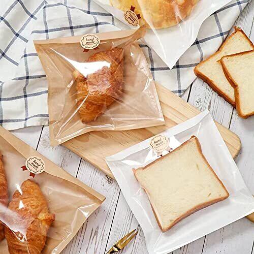 パン袋 焼きたてのパン袋 サンドイッチバッグ ベーキング包装 クラフト紙 セミフィルム紙 ヒートシール可能 電子レンジ対応可 ラッピングシール付き (21×25)cm 50枚入り