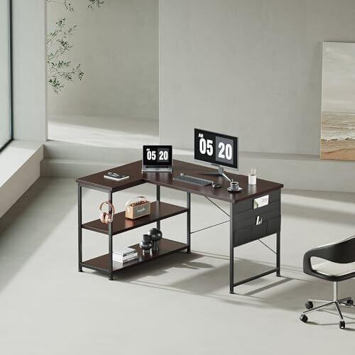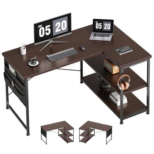 デスク l字デスク 机 pcデスク右棚左棚 幅107cm 勉強机 桌子 作業机 学習机 収納袋付き ダークブラウン